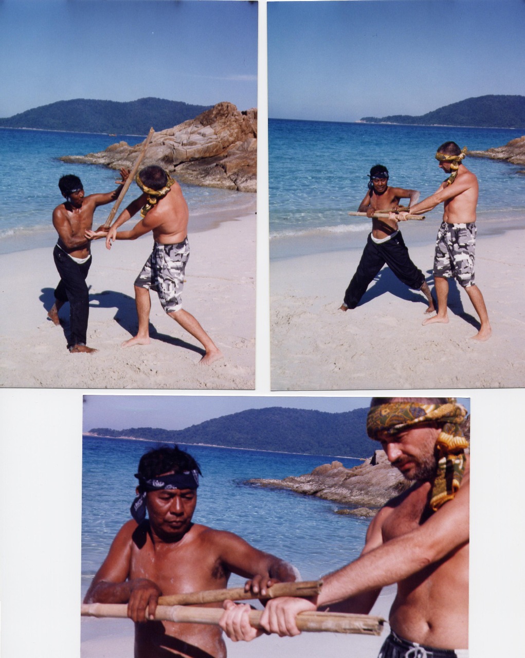 In alcuni casi, per la verità i più frequenti nelle arti tradizionali, l’impiego dei bastoni segue fondamentalmente le movenze dei jurus a mani nude con le dovute variazioni, per sfruttare al massimo le possibilità dell’arma.